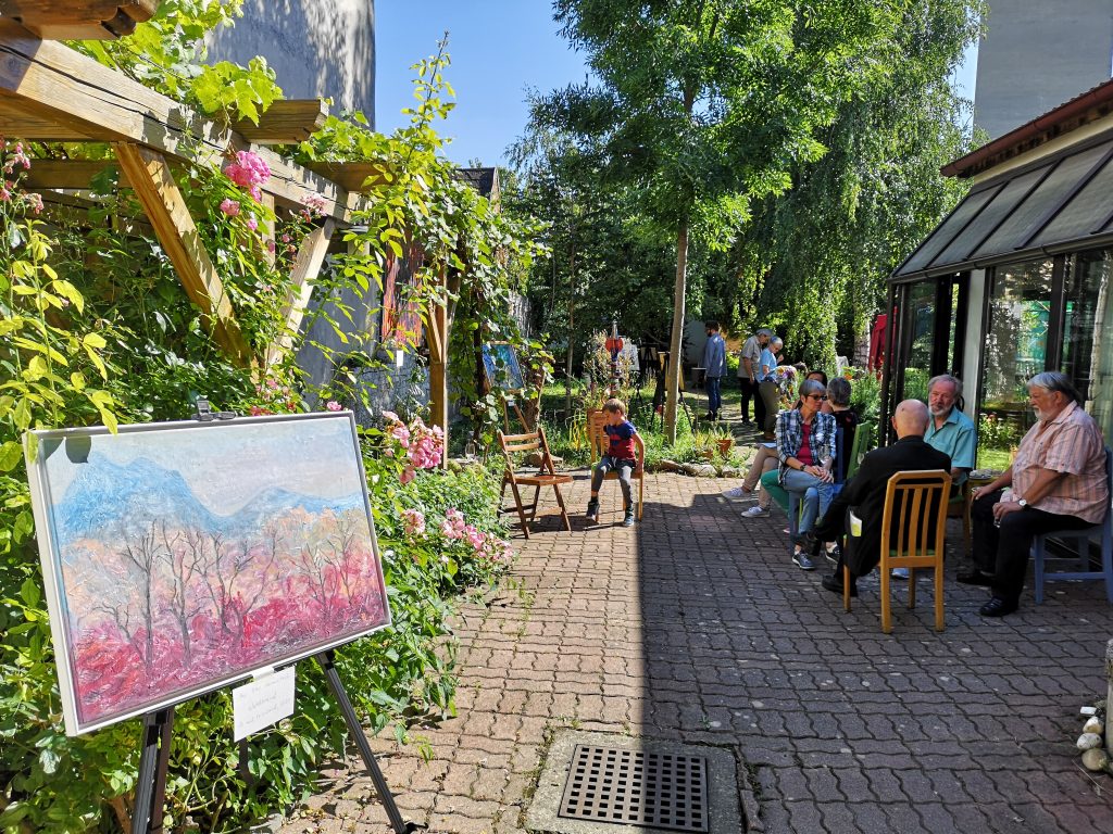 Ende August und Anfang September 2021 fand in einem Naturgarten eine Gemeinschaftsausstellung von sechs Künstlerinnen und Künstlern statt. Hier einige Bilder zur Erinnerung:
